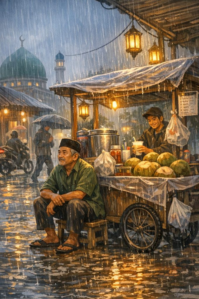 Duamata.id - Menjelang pukul empat sore, langit sudah seperti wajah orang yang sedang menahan tangis. Kelabu, berat, dan menggantung rendah. Di pinggir jalan...