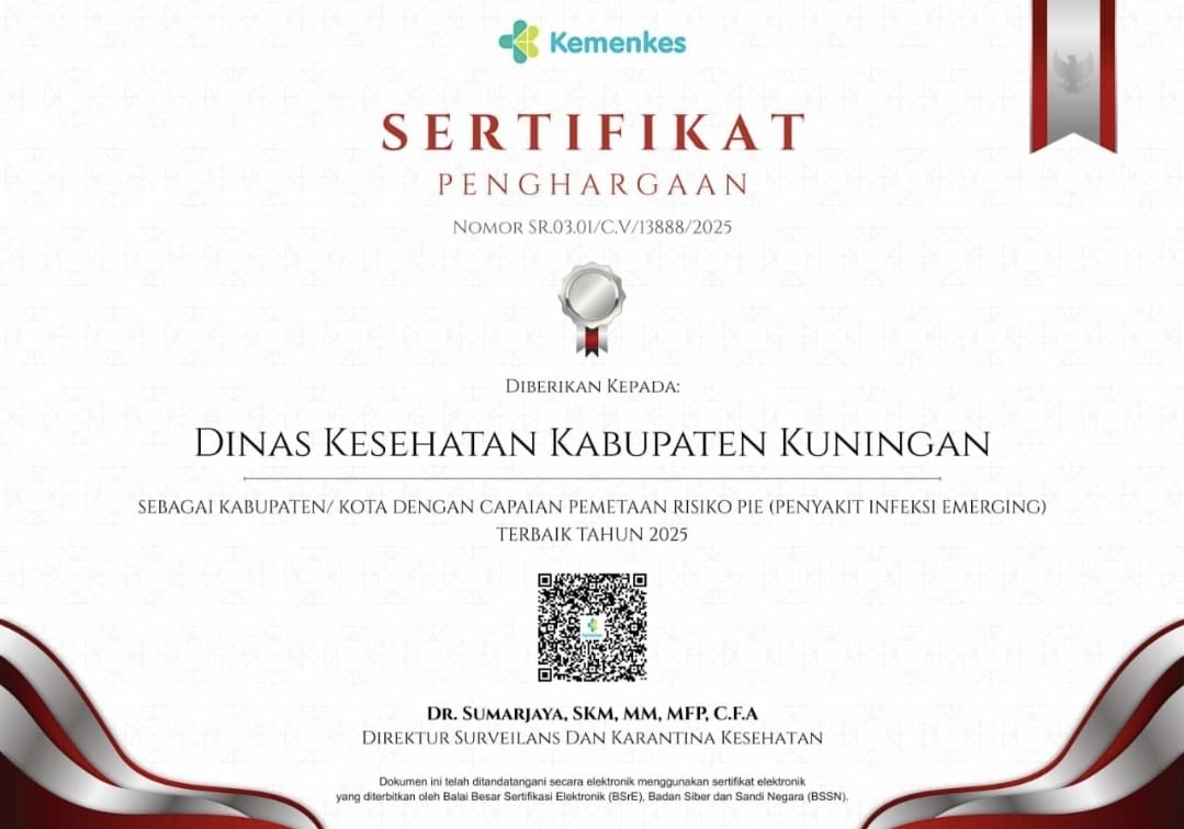 KUNINGAN – Dinas Kesehatan Kabupaten Kuningan kembali menorehkan prestasi membanggakan di tingkat nasional dengan meraih dua penghargaan dari Kementerian Kesehatan Republik Indonesia, Kamis...