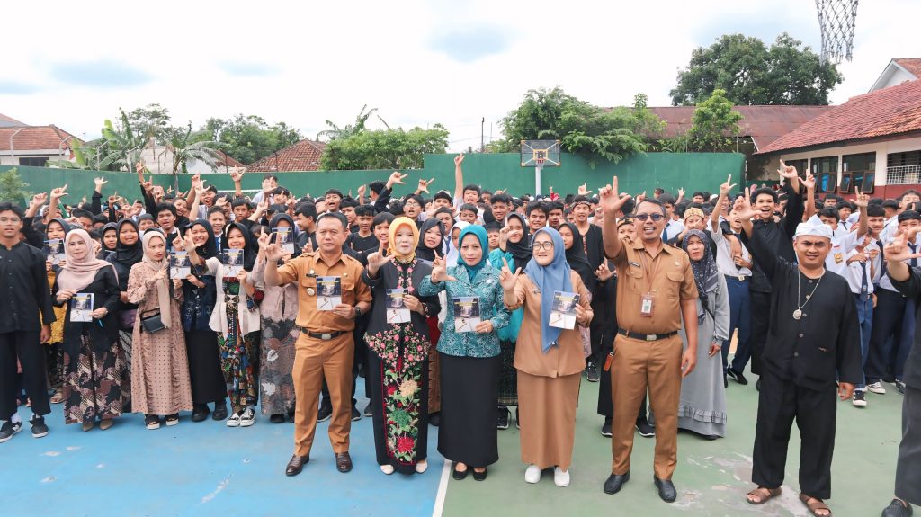 KUNINGAN – Suasana haru dan penuh semangat terasa di aula SMP Negeri 1 Cilimus (11/11/2025). Peringatan Bulan Bahasa tahun ini menjadi momen istimewa karena dirangkai dengan Launching Buku Puisi Essay karya 22 siswa serta perayaan ulang tahun ke-1 Necis Mini Theater, dihadiri langsung oleh Bunda Literasi Kabupaten Kuningan, Bunda Ela Helayati.