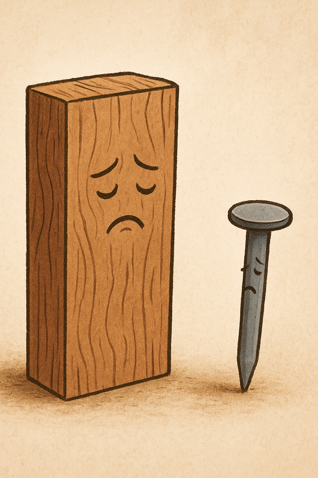 Di sebuah bengkel sederhana di pinggir hutan, seonggok kayu jati dan sebatang paku besi tergeletak berdampingan. Keduanya sama–sama diam, namun masing-masing menyimpan cerita yang tak pernah diucapkan.