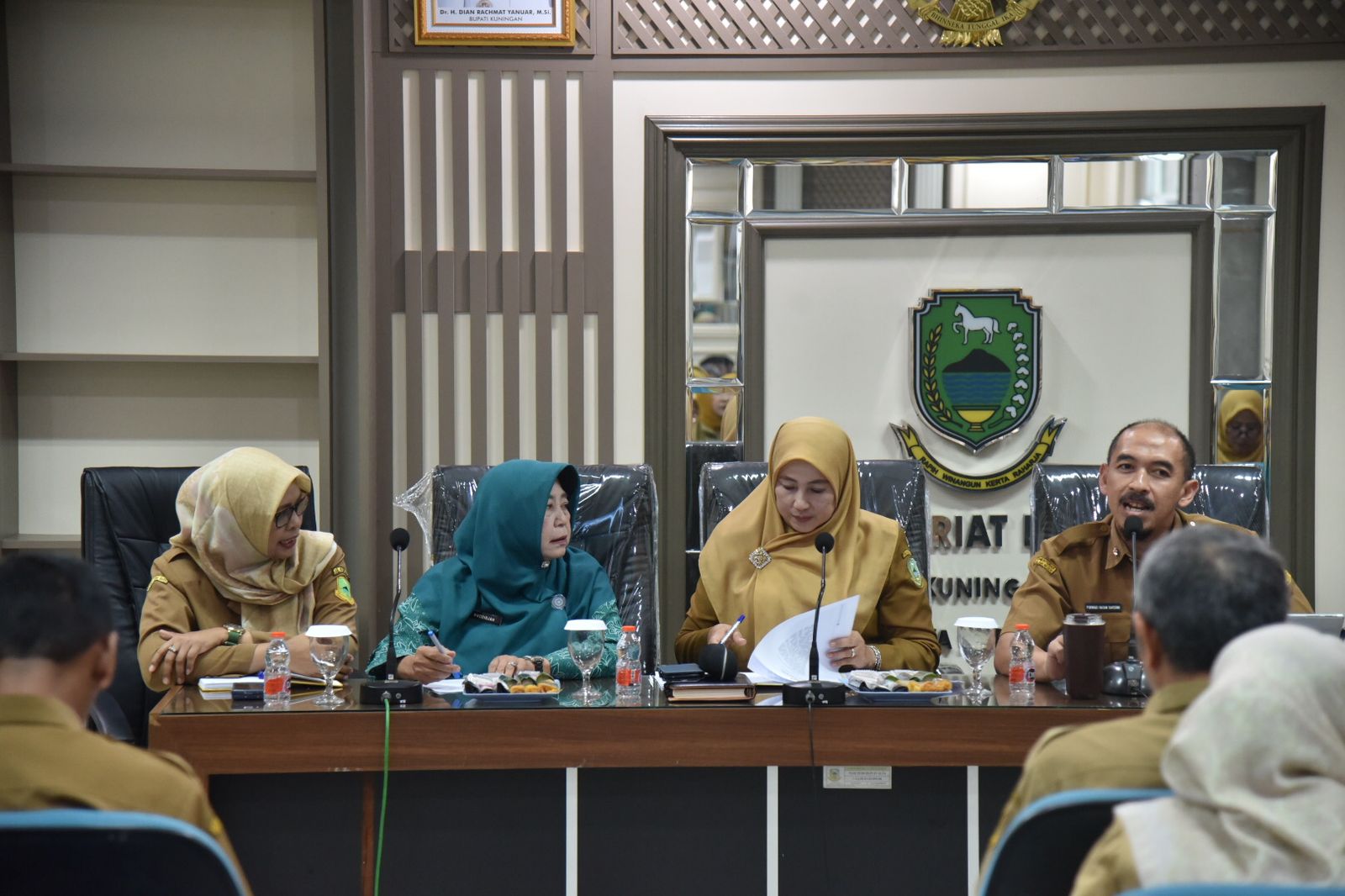Rakor yang digelar di Gedung Sekretariat Daerah Kabupaten Kuningan, Senin (21/4/2026), dihadiri lintas sektor—mulai dari kepala perangkat daerah, camat lokus stunting, tenaga kesehatan, hingga kader dan Tim Pendamping Keluarga (TPK).